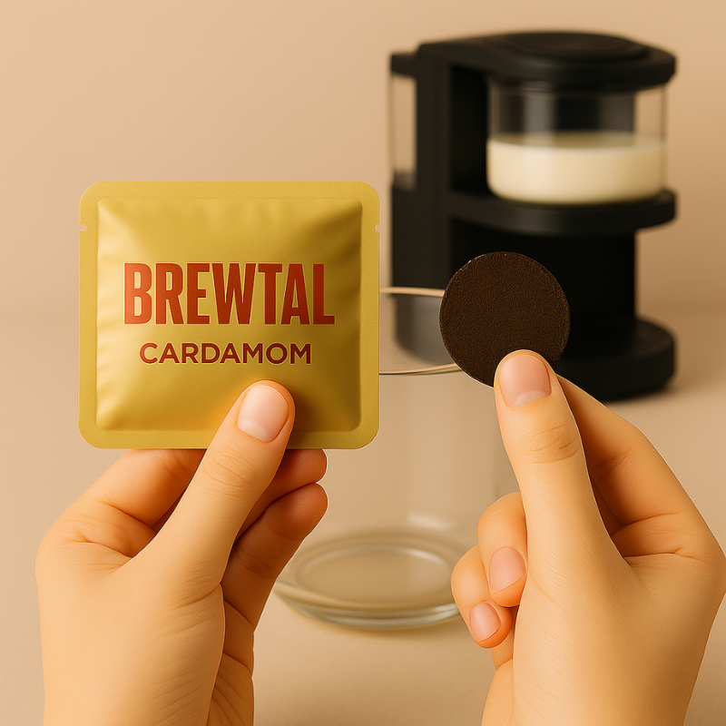 Brewtal Tea Pods are pressed chai cakes — freshly compressed at source to lock in real flavour and aroma. No oxidation. No over-processing. Just fresh, real chai.